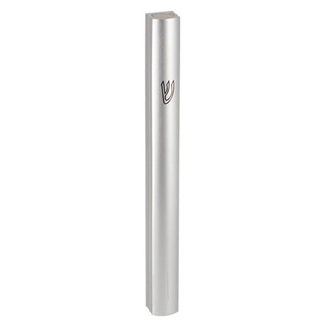 Plastic Mezuzah 15Cm - Crown And Decorations - Silver